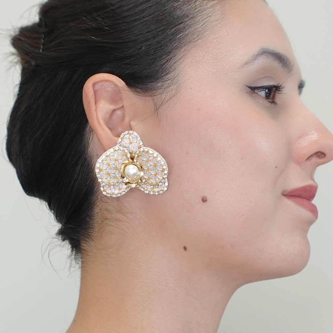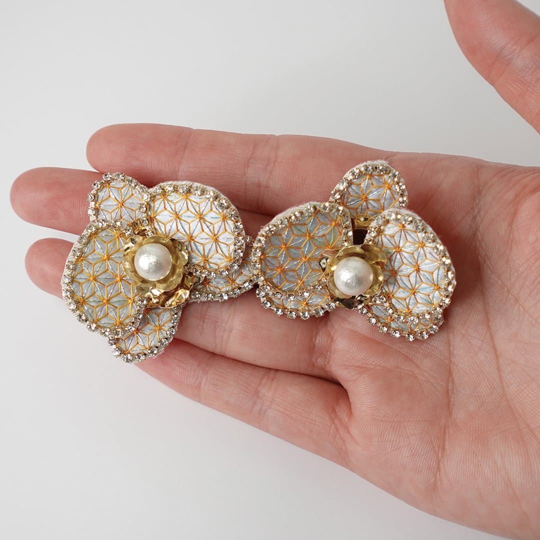 日本の伝統工芸「日本刺繍」の変わり縫い(麻の葉文様)を施したピアスです。