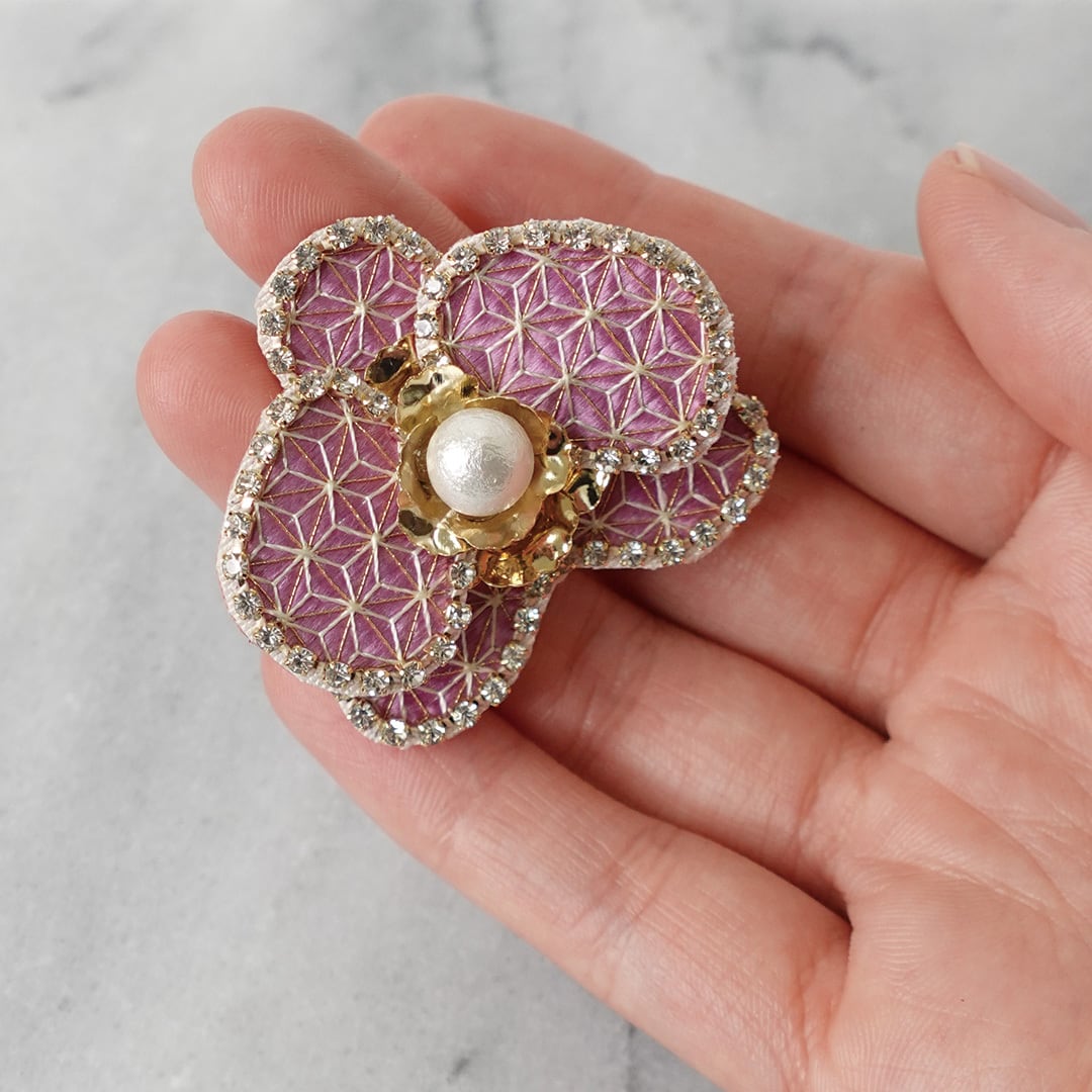 【蘭】麻の葉文様刺繍 イヤリング/【Orchid】Asa-no-ha pattern embroidery earring