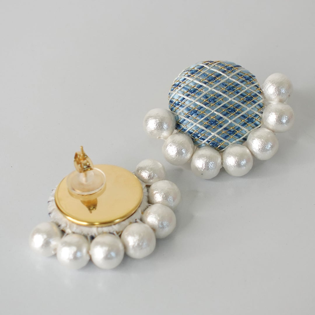 【縁】業平格子×コットンパール ピアス/【En (Connection)】 – Narihiragoushi × Cotton Pearl Pierced Earrings